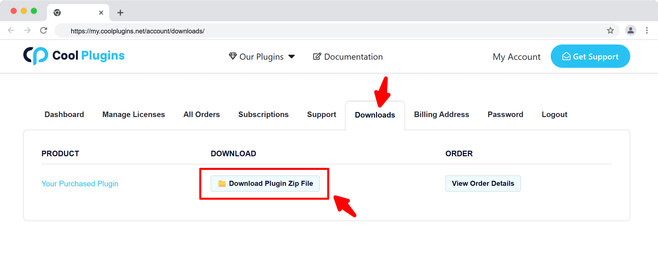 2. From Your Account – Log in to your Cool Plugins account and click the Download button.