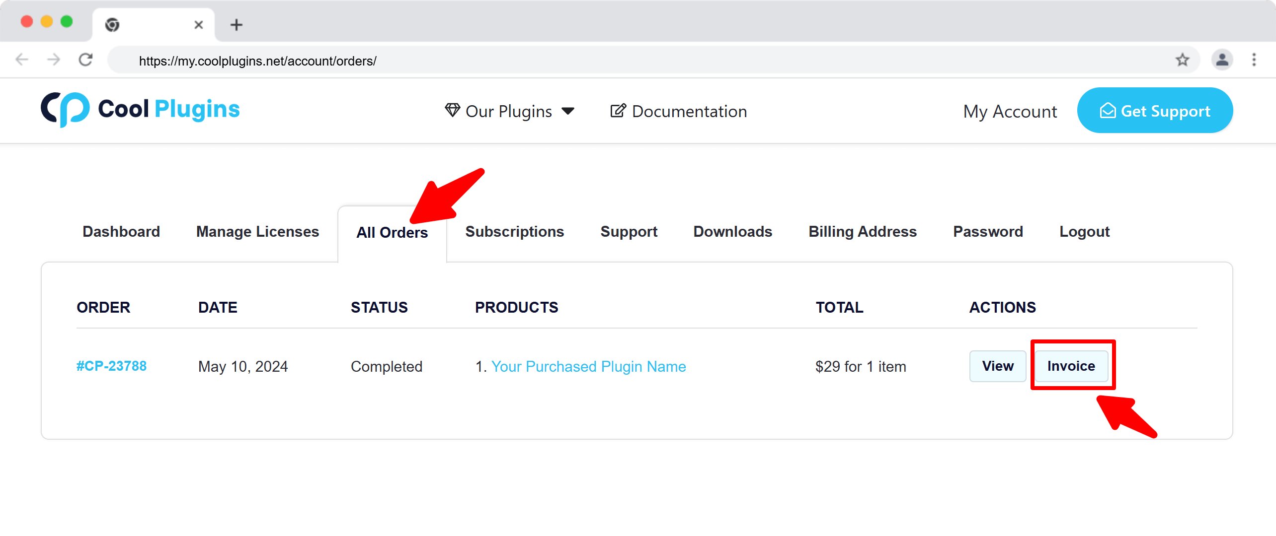 Resposta: Você pode encontrar sua chave de licença fazendo login em sua conta em my.coolplugins.net. Após o login, navegue até a seção Gerenciar Licenças. Lá, você verá uma lista de seus plugins adquiridos junto com suas chaves de licença exibidas ao lado de cada nome de plugin.