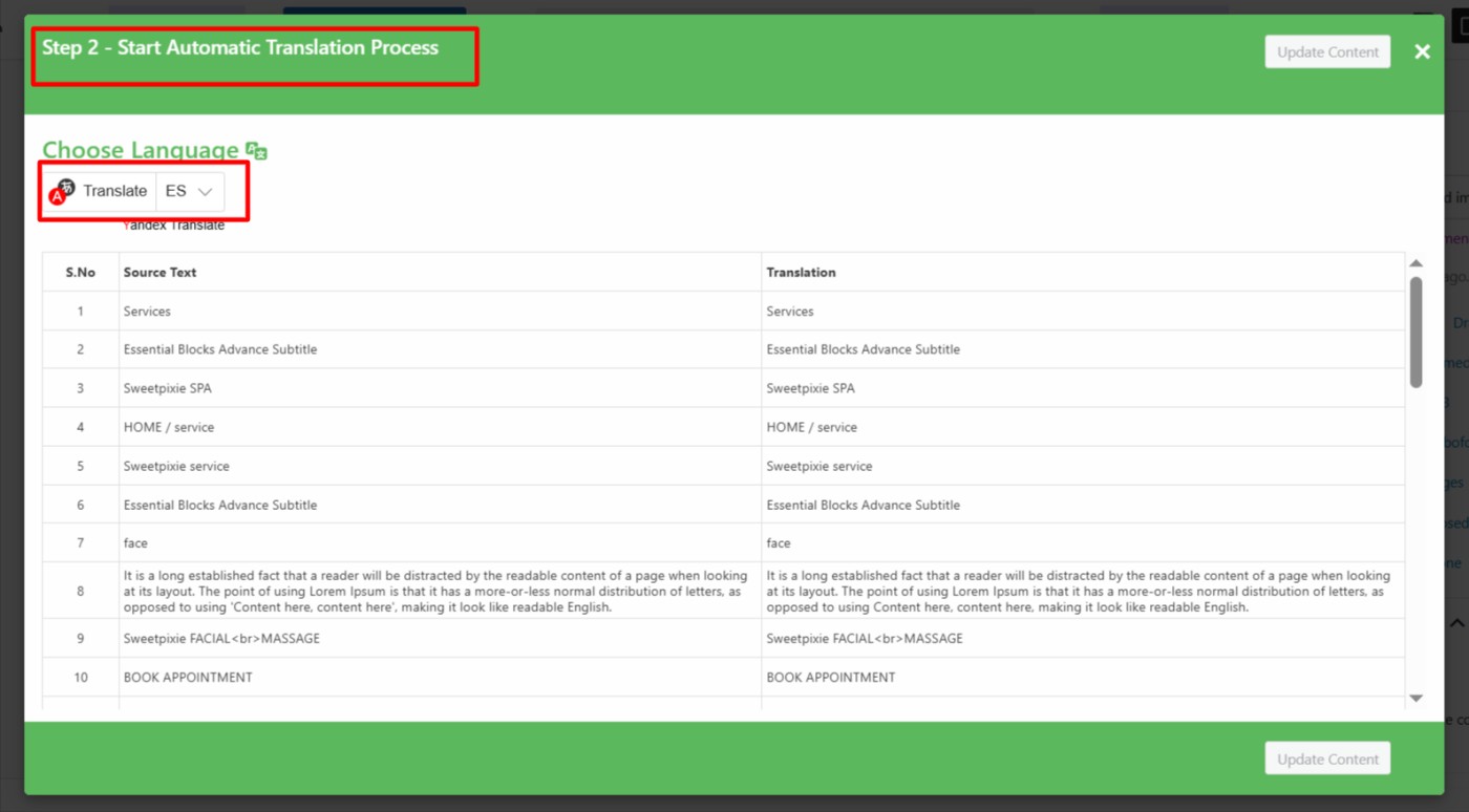 update content yandex translate