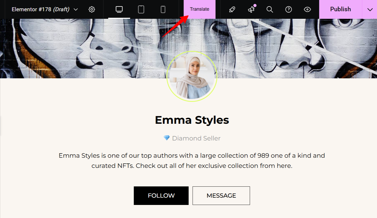 • Click on the Translate button within the Elementor editor interface.